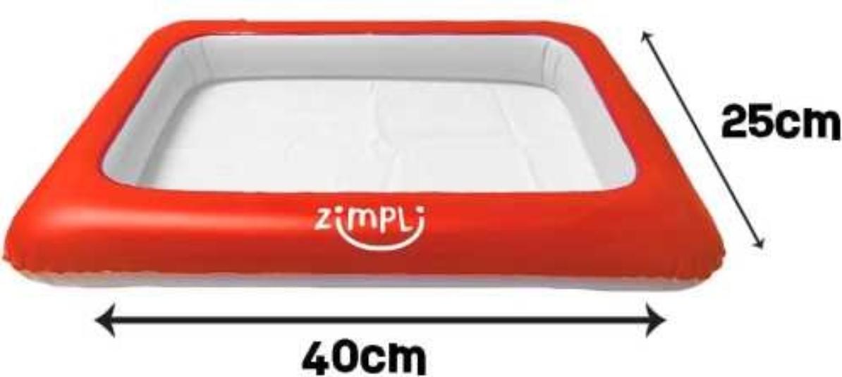 La bandeja inflable se puede utilizar con cualquier tipo de juguete sensorial como arena, barro, agua y cualquier producto Zimplikids.