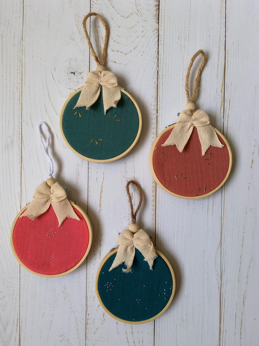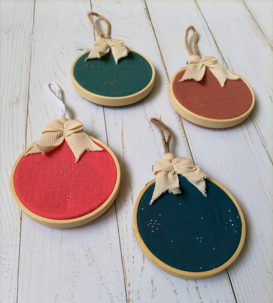 Estos modelos no se pueden personalizar, porque la doble gasa que hemos utilizado tiene unos apliques, y no permite que se planche la tela, ya que desaparecerían. Pero creemos que han quedado muy finas y bonitas, y que decorarán tu 🎄 árbol a las mil maravillas.
