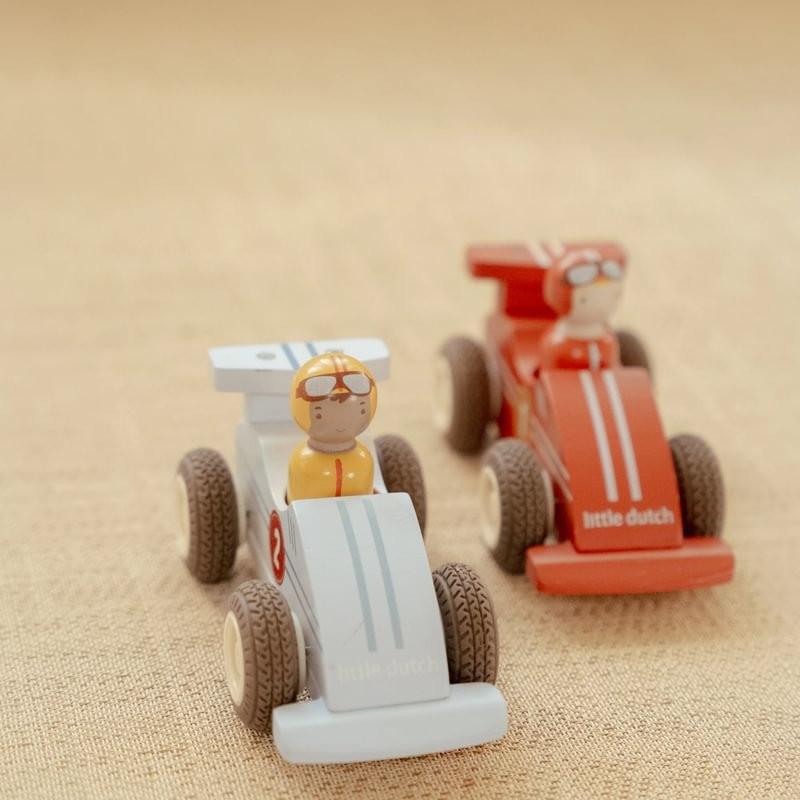 Este set de dos coches de carreras de madera cuenta con una genial función de retroceso.