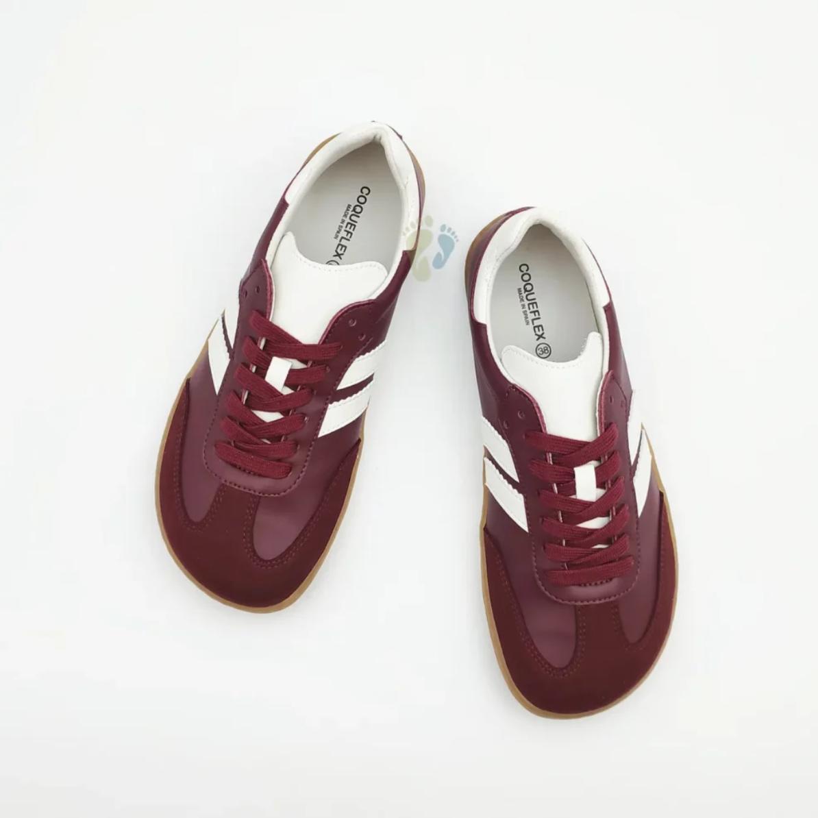 Vienen en color borgoña con la lengüeta, los cordones y otros detalles en blanco, perfectas para un look casual y natural.