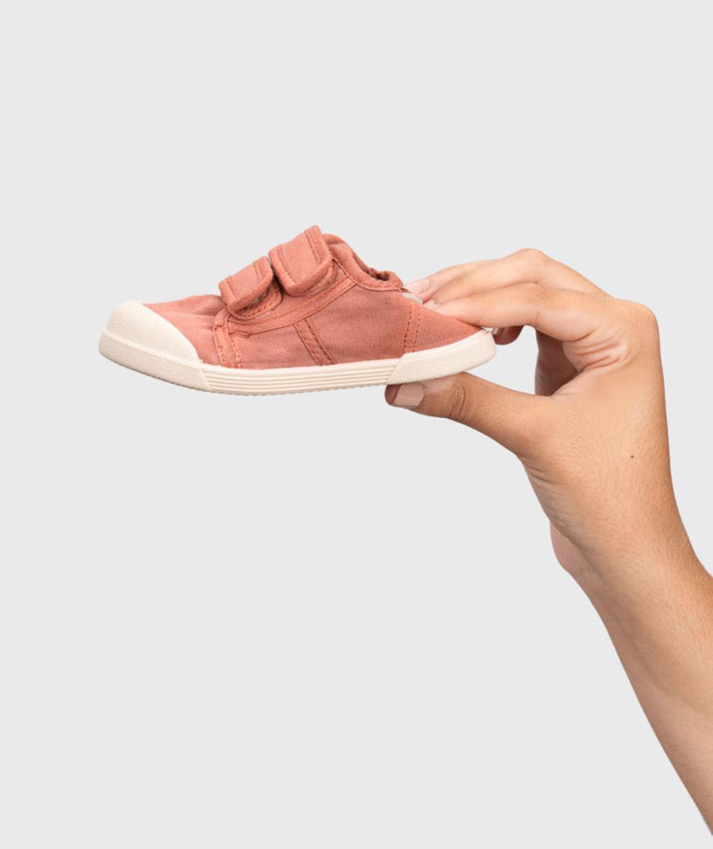 Zapatilla de lona con doble cierre adherente 100% algodón, de concepto barefoot medium, cero drop, flexible, blandita y con plantilla extraíble.