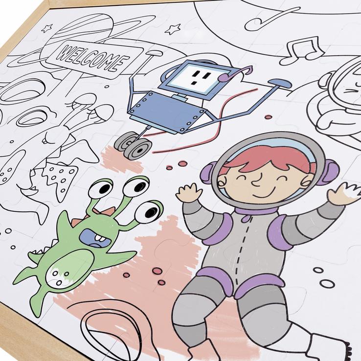 También hay un dibujo en blanco por detrás para que puedas colorear tu propio puzle.