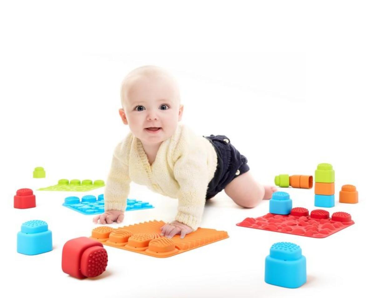 Además también podrá realizar sus primeras torres con los bloques sensoriales que incluye.