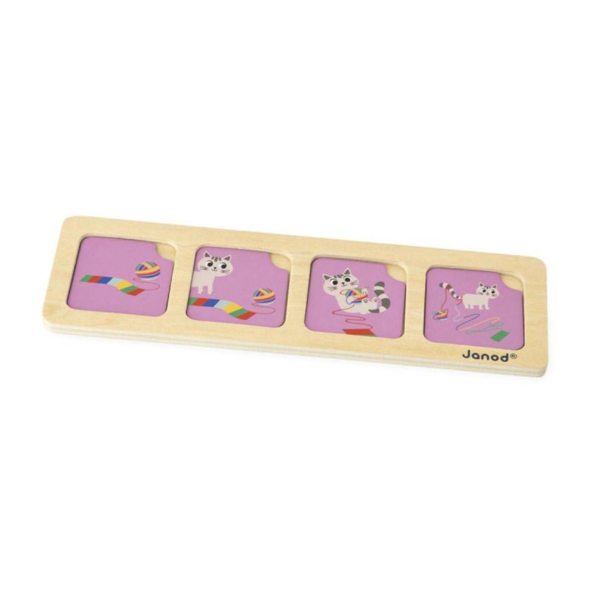 Gracias a la actividad en solitario, tu peque aprenderá a clasificar acciones cronológicamente y a desarrollar su reflexión y su atención. También está disponible un sistema de autocorrección.